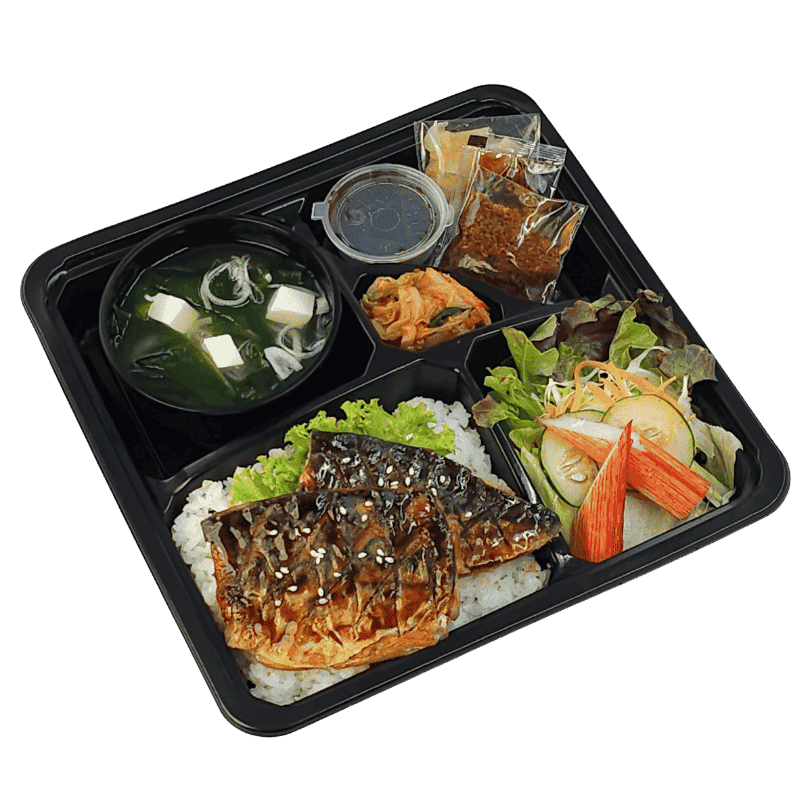 เบนโตะ ซาบะย่างเทริ มินิสลัดปูอัด ซุปมิโซะ กิมจิ