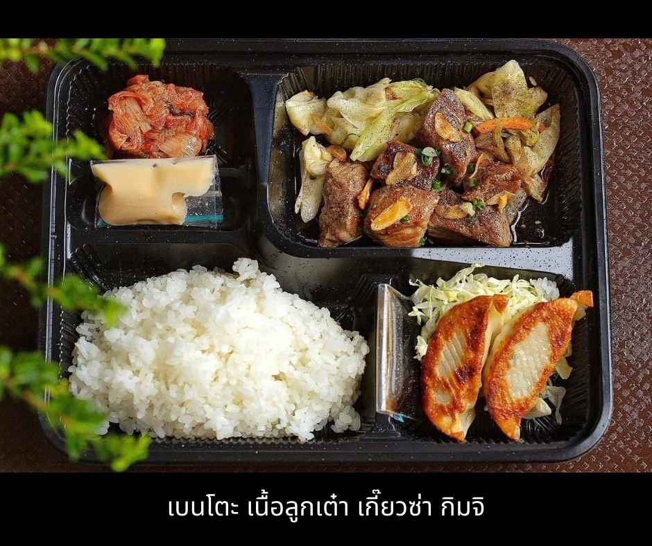 เบนโตะ เนื้อลูกเต๋า เกี๊ยวซ่า กิมจิ อาหารกล่อง…