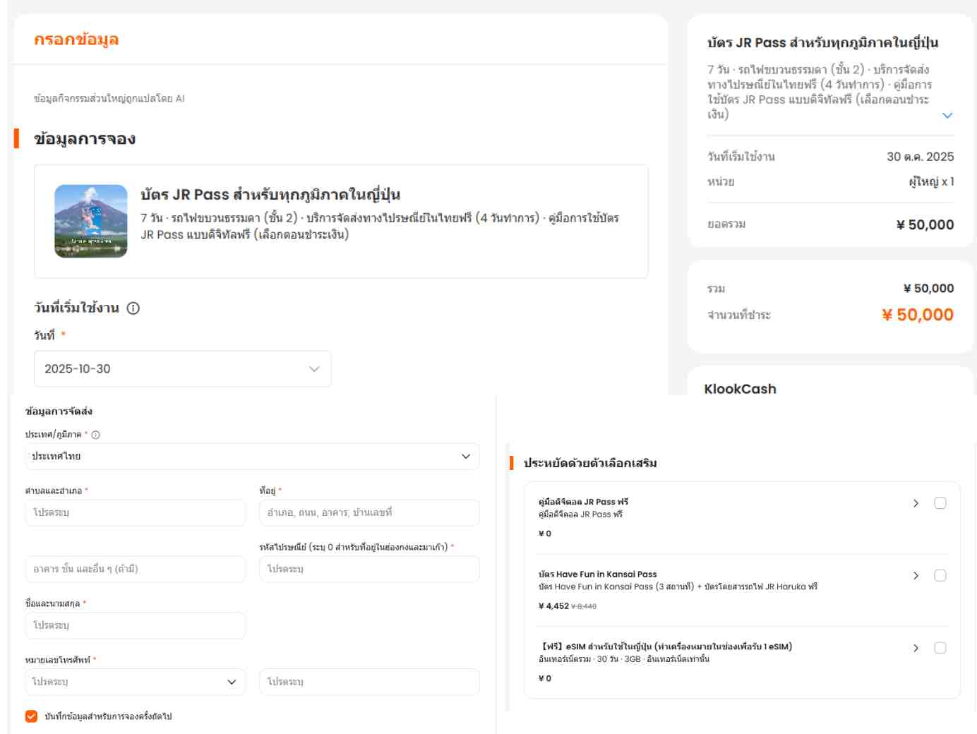ขั้นตอนการเลือกและจองซื้อ JR Pass ผ่านแอปพลิเคชัน Klook สำหรับนักท่องเที่ยว